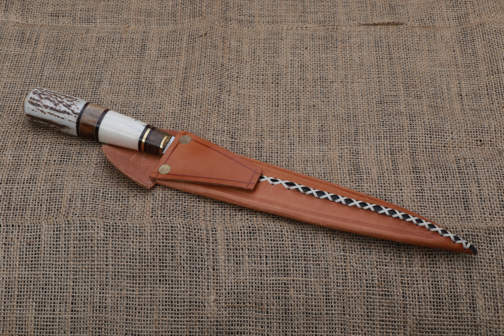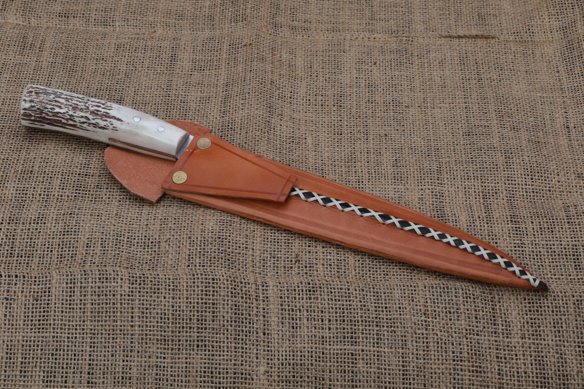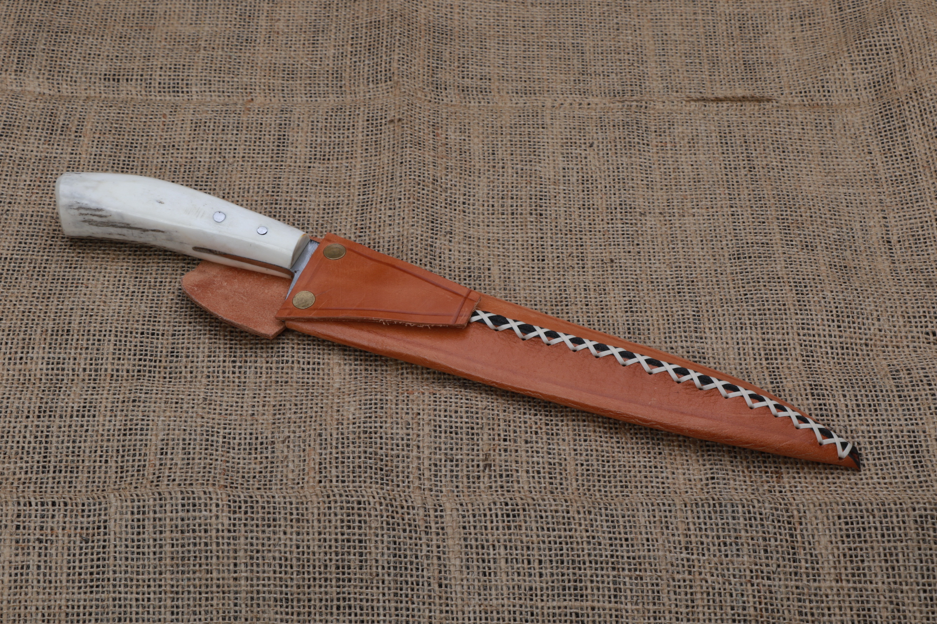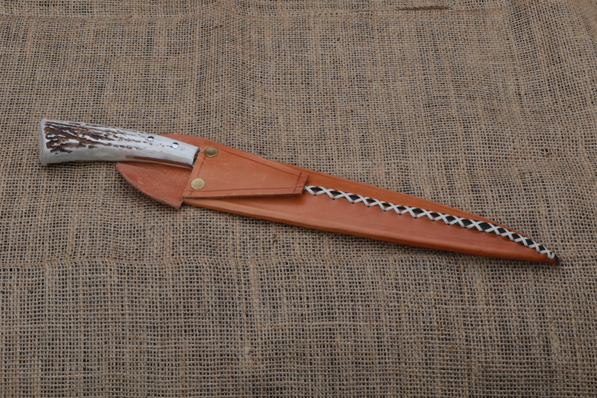 - Fabricada en cuero genuino, con costuras reforzadas y un diseño que protege la hoja y facilita su transporte.