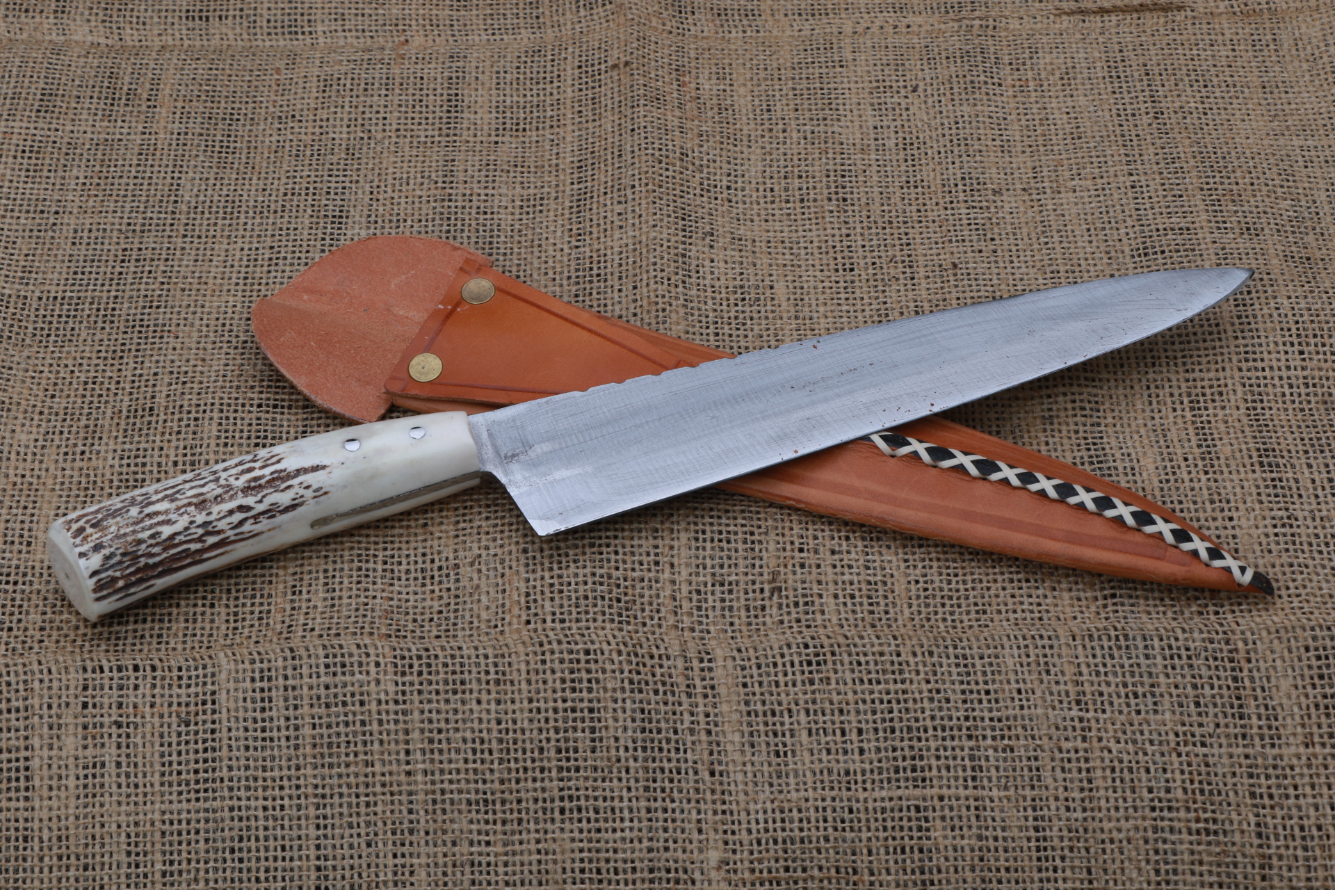 - La hoja es robusta, con un filo liso, ideal para cortar con precisión las carnes asadas.