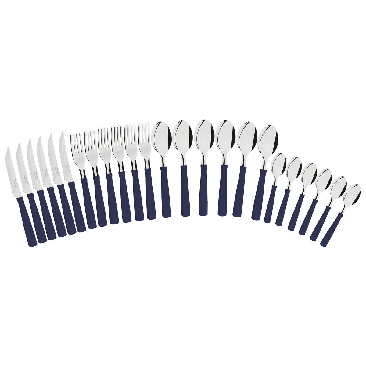 Juego de cubiertos Tramontina New Kolor con hojas de acero inoxidable y mangos de polipropileno azul, 24 piezas