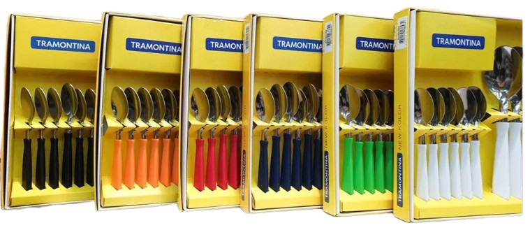 Sorprende a tus invitados con cubiertos que harán tus comidas aún más agradables y prácticas. El juego de cubiertos New Kolor de 24 piezas de Tramontina con hojas de acero inoxidable y mangos de polipropileno negro, azul o rojo que incluye cucharas, tenedores y cuchillos. Todas las piezas tienen hojas de acero inoxidable y mangos de polipropileno, lo que las hace aún más cómodas de manejar, ya que la forma del mango se adapta mejor a la mano. Y para hacer las piezas aún más resistentes, están sometidas a procesos que ofrecen durabilidad a las hojas y una larga vida al filo. Lo mejor de todo es que puedes meter las piezas en el lavavajillas sin comprometer las características originales del producto.