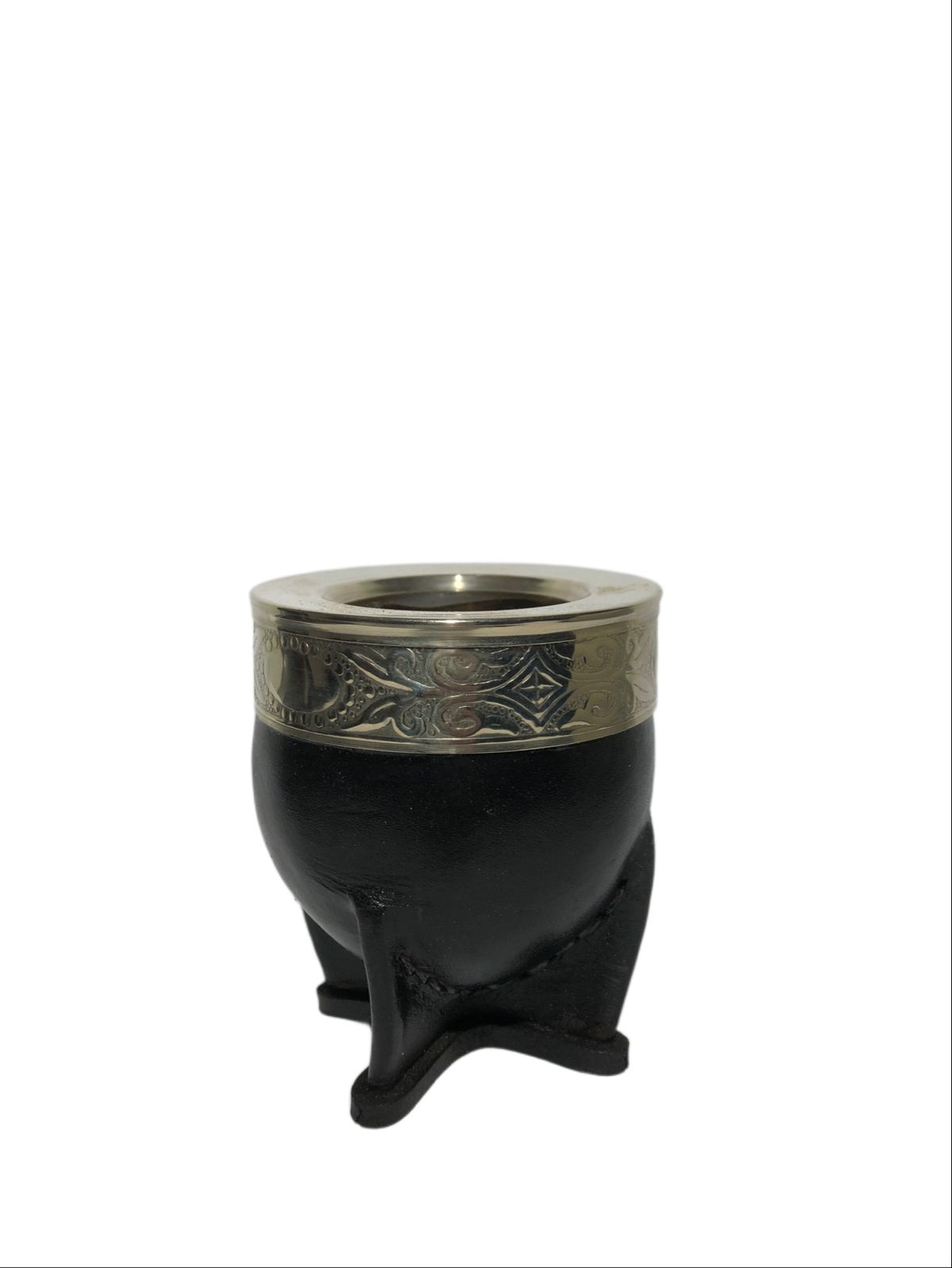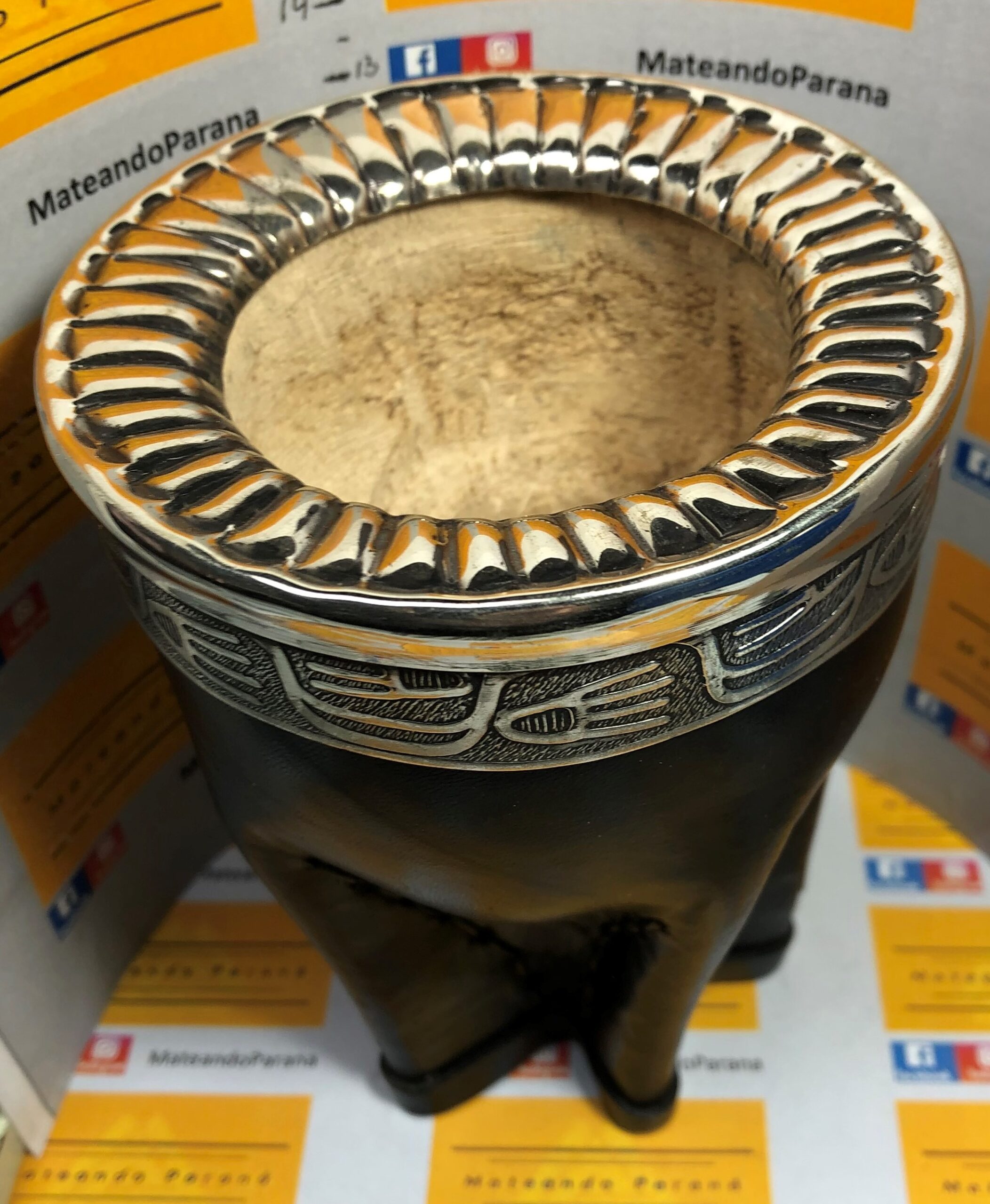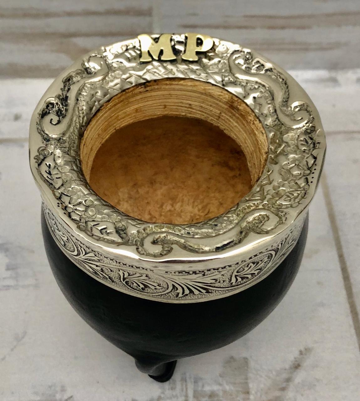 Virola de Alpaca: La virola, que es el anillo que rodea la boca del mate, está hecha de alpaca, una aleación de metales que se asemeja a la plata. La alpaca se utiliza por su brillo, durabilidad y facilidad para ser trabajada. Es una de las características más distintivas del mate imperial. Puede ser lisa o cincelada con diseños intrincados. El cincelado es una técnica artesanal que consiste en grabar diseños en el metal, lo que le da a la virola un aspecto único y lujoso.