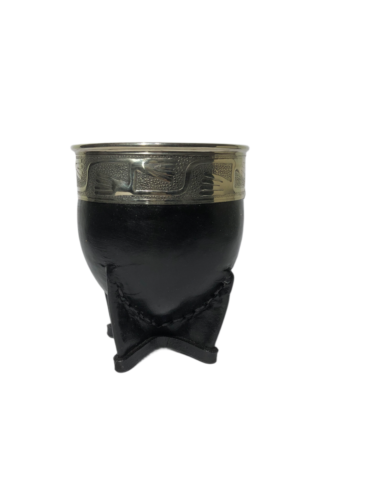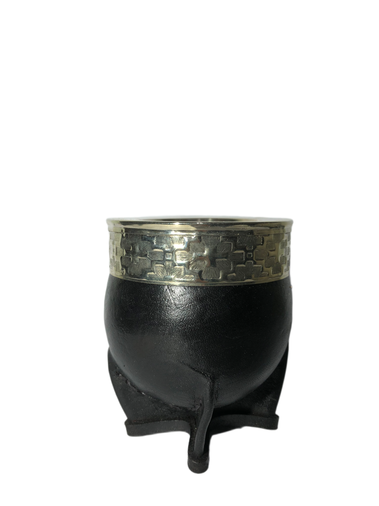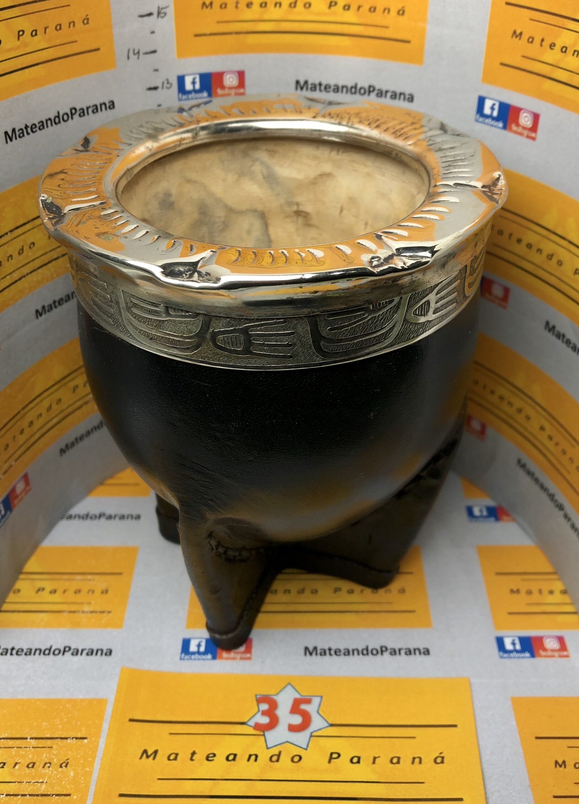 Virola de Alpaca: La virola, que es el anillo que rodea la boca del mate, está hecha de alpaca, una aleación de metales que se asemeja a la plata. La alpaca se utiliza por su brillo, durabilidad y facilidad para ser trabajada. Es una de las características más distintivas del mate imperial. Puede ser lisa o cincelada con diseños intrincados. El cincelado es una técnica artesanal que consiste en grabar diseños en el metal, lo que le da a la virola un aspecto único y lujoso.