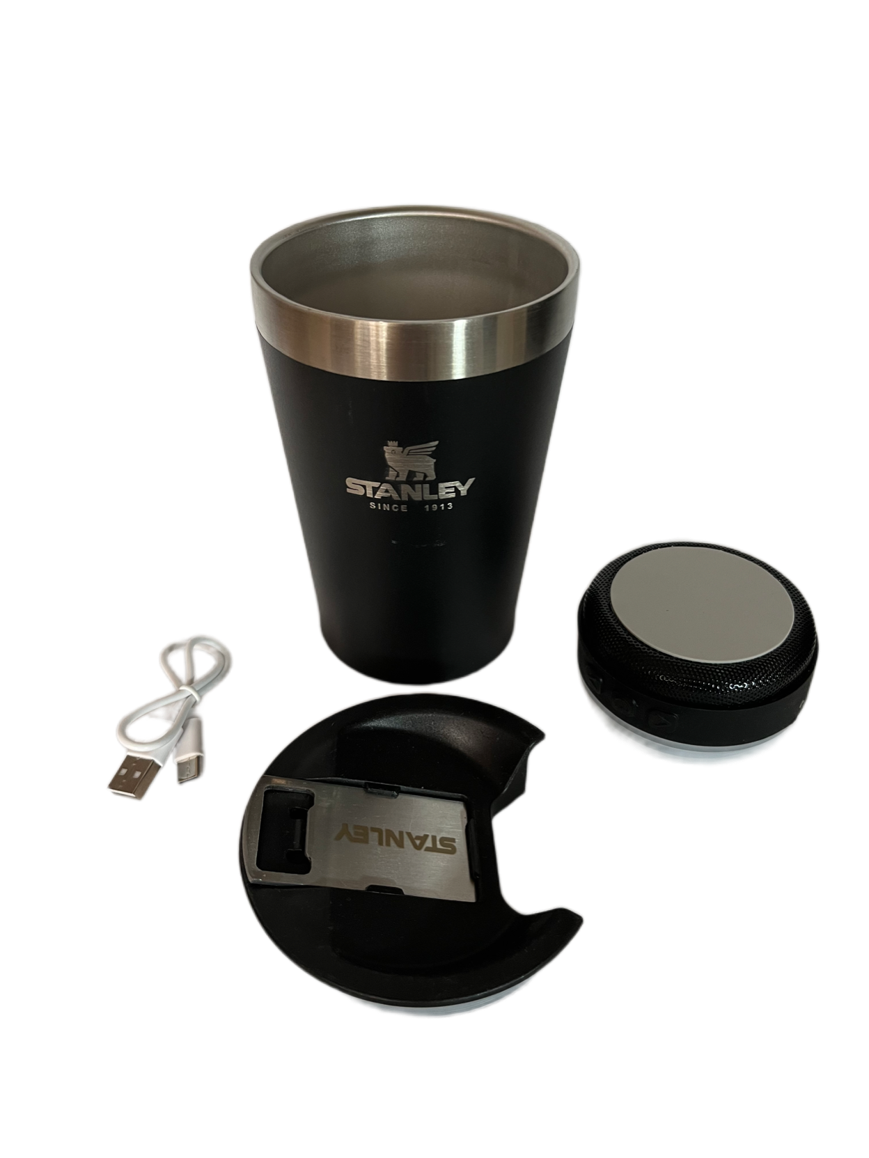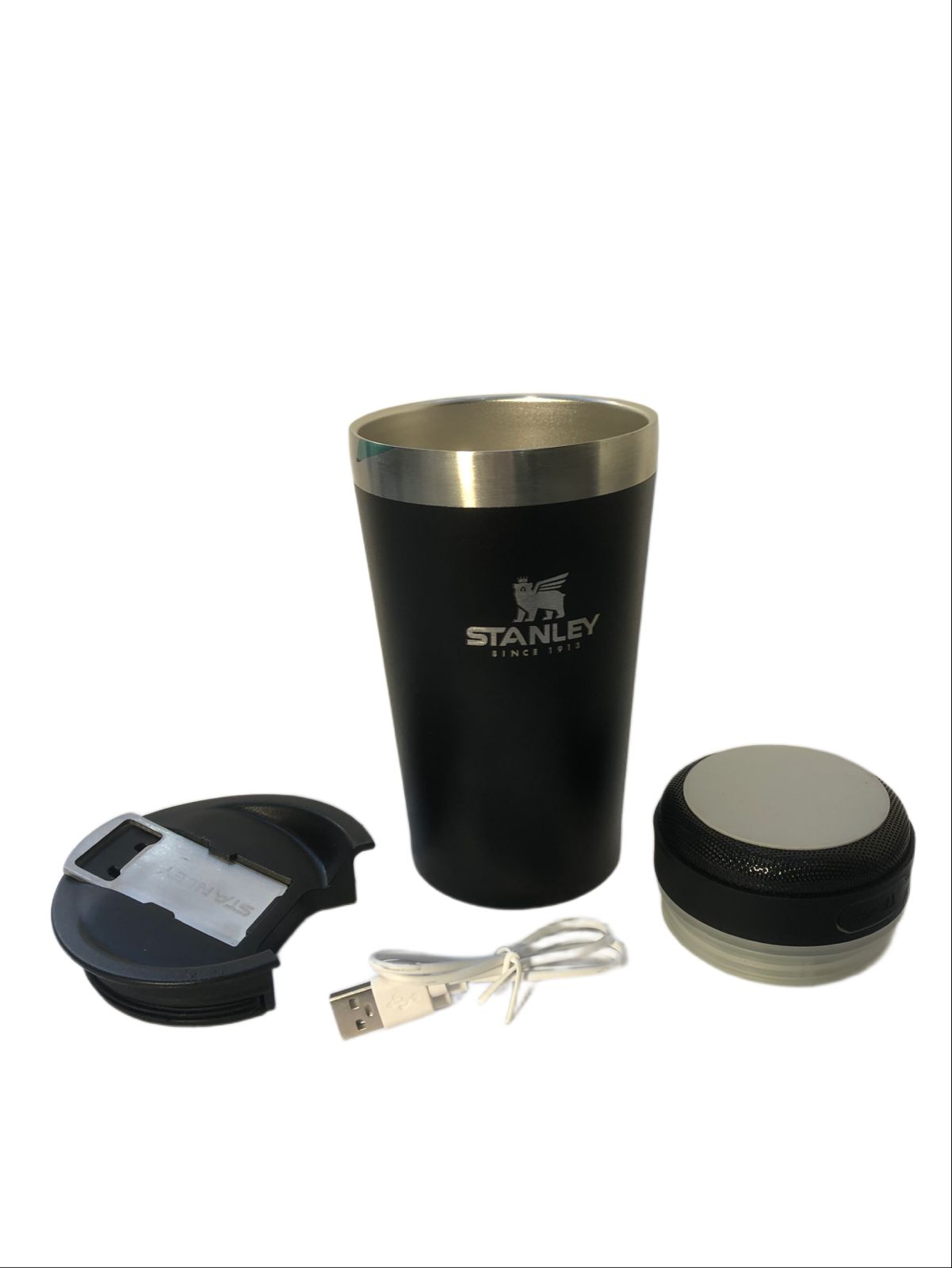 - El parlante esta ubicado en la base del vaso y ofrece un sonido de calidad para disfrutar de la música mientras se bebe cerveza.